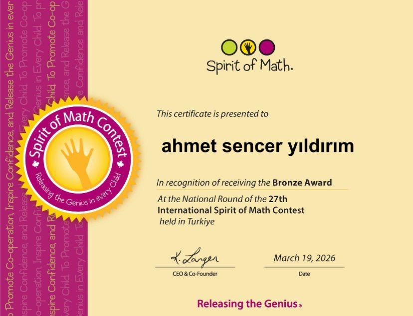DOĞA İLE BULUŞTUĞUMUZ ANLAMLI BİR GÜN1 Nisan 2026 Spirit of Math (Kanguru) yarışması sonucu bronz madalya kazanıp Toronto’ya davet edilen ilkokul öğrencimiz Ahmet Sencer Yıldırım’ı tebrik ederiz. İlgili Haberler1 Nisan 2026DOĞA İLE BULUŞTUĞUMUZ ANLAMLI BİR GÜNDevamı1 Nisan 2026ZİRVE YİNE TED MEŞALESİ İLE AYDINLANIYORDevamı31 Mart 2026KÜTÜPHANELER HAFTASI “KİTAP KARDEŞLİĞİ” PROJEMİZDevamı