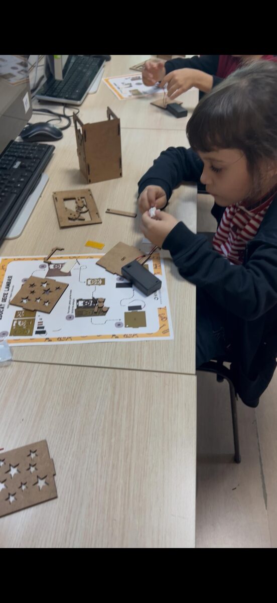 Öğrencilerimizle birlikte enerji dönüşümünü deneyimlediğimiz STEMBOX Gece Lambası etkinliğinde, LED, pil ve pil yuvası kullanarak kendi devrelerimizi kurduk.